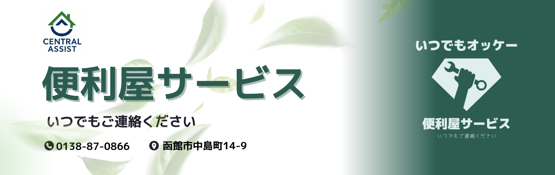セントラルアシストは、函館市を拠点とする“暮らしのインフラサポート企業”です。特級便利屋サービスをはじめ、住まいと日常を支える多彩なサポートをワンストップでご提供しています。