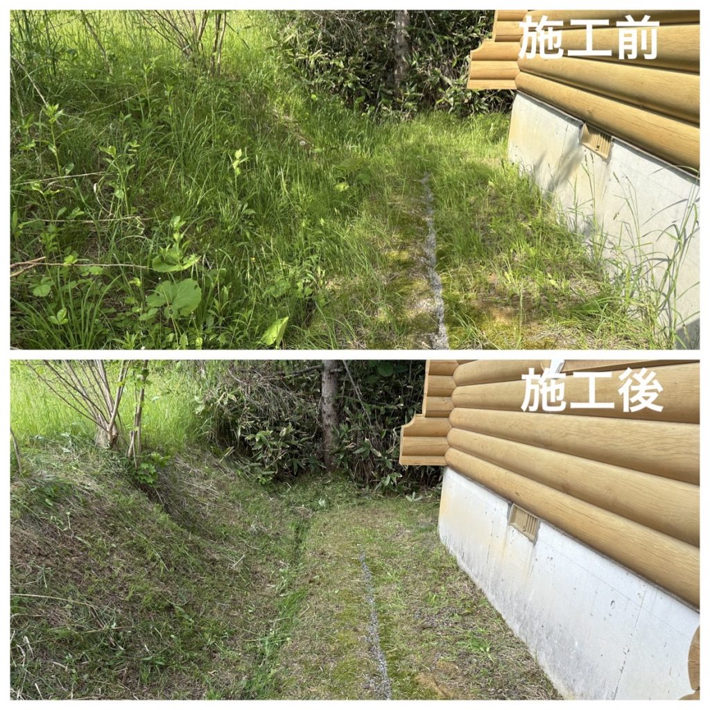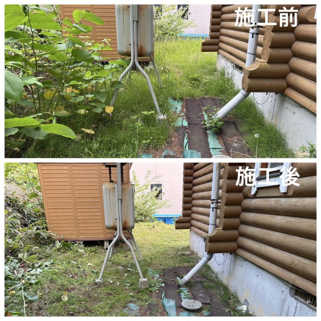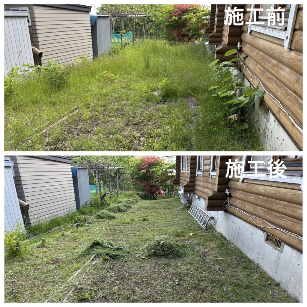 本日は、函館市内のお客様からご依頼いただいた【庭の草刈り作業】を行いました。