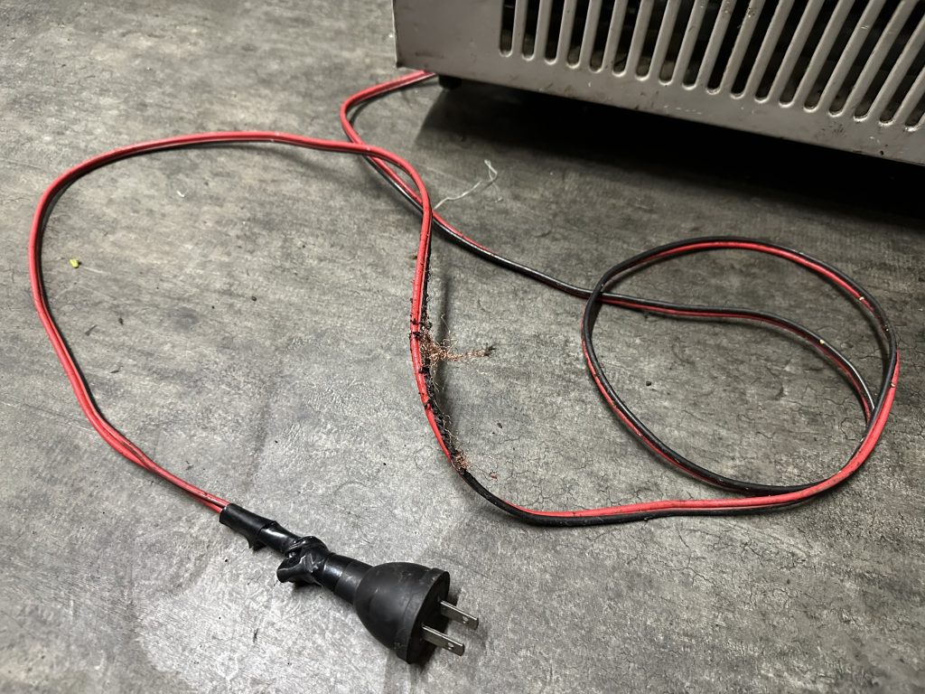 スタッフさんに使用状況を伺ったところ、設置場所の都合で頻繁にコードに負担がかかるようでした。どうやらその影響で疲労断線したようです。