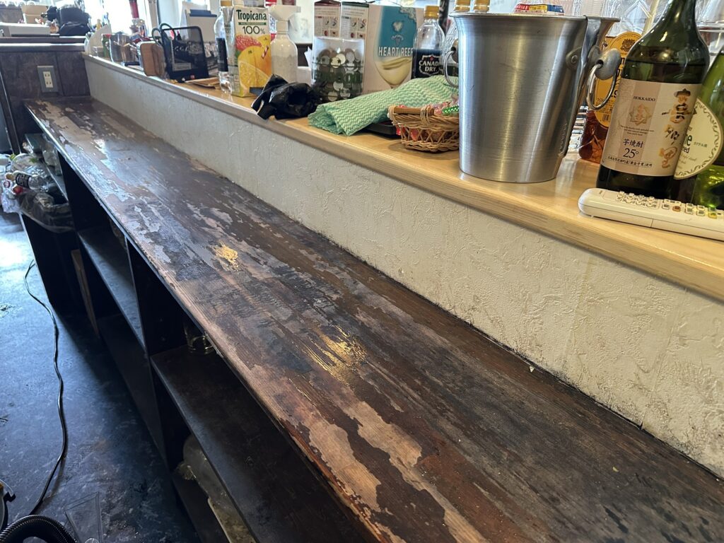 今回は、BAR飲食店様よりご依頼をいただき、大型カウンターの修繕を行いましたので、その施工内容をご紹介します!
